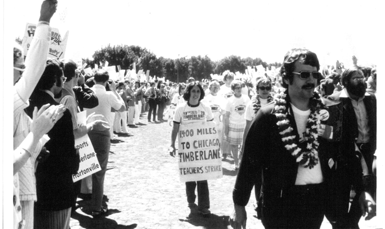 As the strike dragged on one organizer had an idea to march from New Hampshire to Chicago for the NEA Representative Assembly. The organizers sold shirts that spoofed the Live Free or Die state motto. The funds from this, as well as the national attention, helped the union eventually win its strike. This strike was especially important because it's what led to the creation of a New Hampshire labor law for state employees.