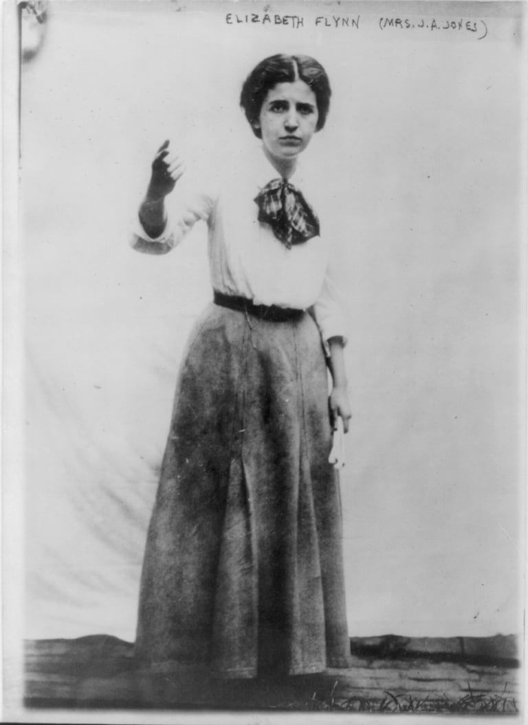 Flynn was born in Concord, NH to the family of Irish immigrants. She became an influential organizer for the IWW and travelled the country in an effort to promote the labor question. She fought for better working conditions, an 8-hour work day, and dignity for workers.